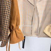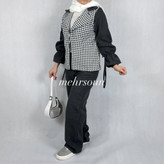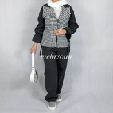 ظاهر کلی: این ست با ترکیب الگوی کلاسیک هوندستوث سیاه و سفید و آستینهای بنددار مشکی، تصویری از تعادل بین استایل مدرن و اصالت کلاسیک را ارائه میدهد. طراحی آن بهگونهای است که هم در محیطهای نیمهرسمی بدرخشد و هم برای استفاده روزمره شیک و راحت باشد.