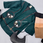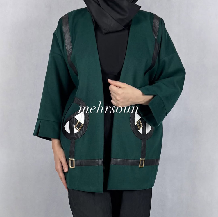 طراحی تزئینی خاص: جیبهای هندسی، سگکهای طلایی و ترکیب رنگی چشمنواز، ظاهری منحصربهفرد ایجاد میکند.
