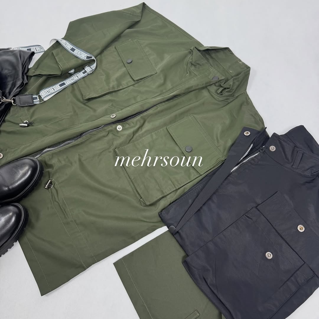 کت بارانی عروسکی جلو زیپ و دکمه پرسی پارچه مموری ضد آب