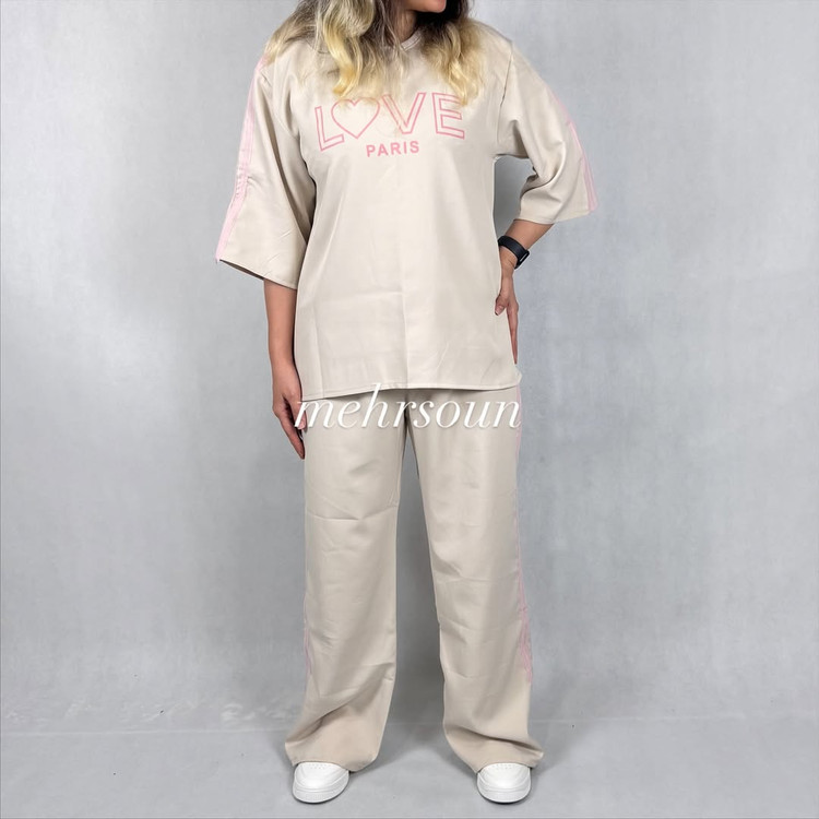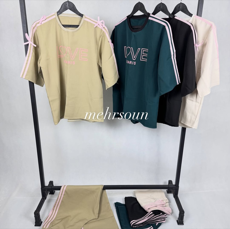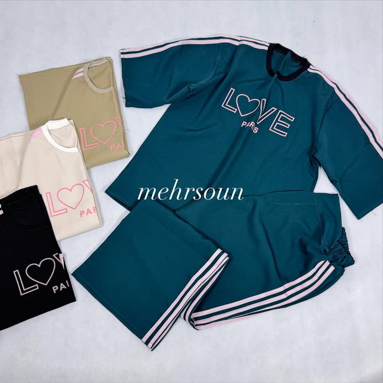 با ست تیشرت و شلوار راحتی طرح LOVE، هر لحظهتو پر از نرمی و حس خوب کن. این ست هم برای راحتی بیرونه هم برای استایل توی خونهست. راحت، خوشدوخت، و دلبرا ست LOVE.