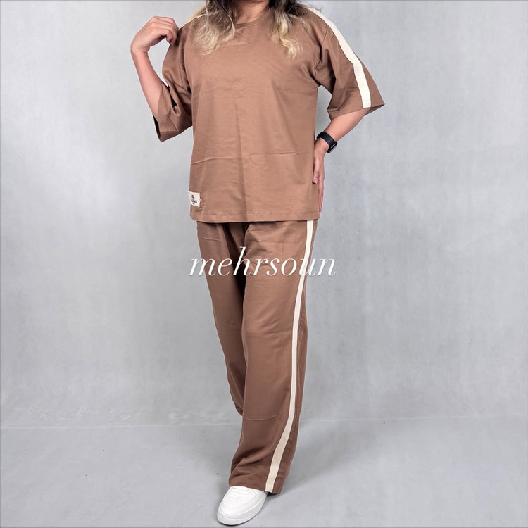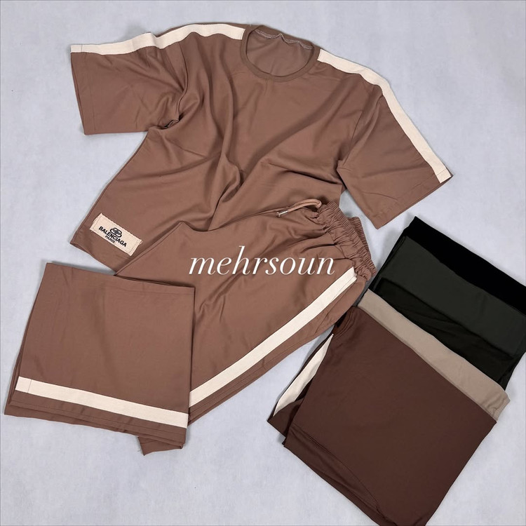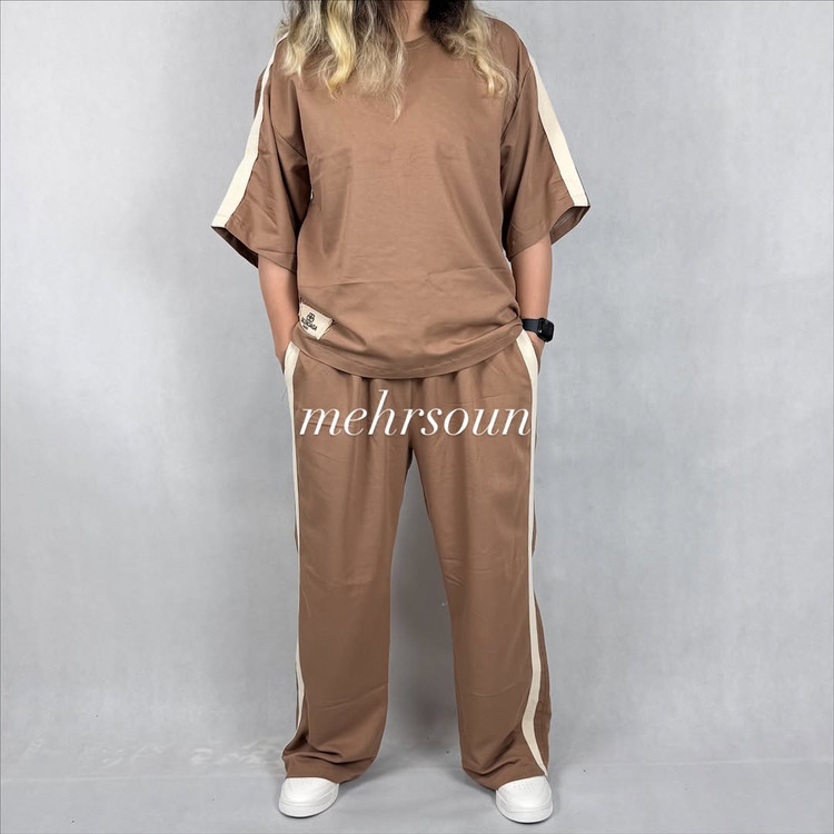 ست اسپرت راحتی، مخصوص روزهایی که میخوای استایل داشته باشی ولی راحت هم باشی. قد شلوار ۱۱۰، قد تیشرت ۷۰.