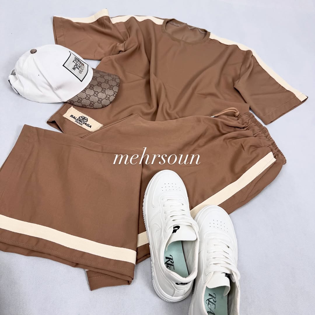 جزئیات : تک خط کار شده بقل تیشرت و شلوار،جیب شلوار