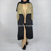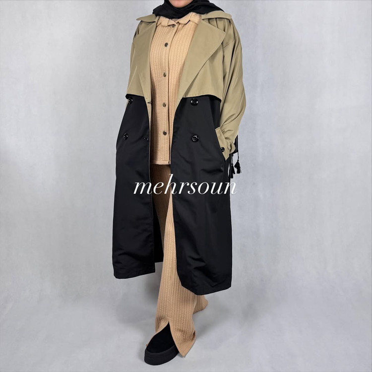 این بارونی با طراحی دوتکه و ترکیب رنگهای خنثی و مشکی، ظاهری مدرن، مینیمال و در عین حال خاص دارد. قسمت بالایی با فرم کلاسیک بارونی و جزئیات دکمهدار، حس رسمی و شیک را منتقل میکند، در حالی که بخش پایینی با فرم آزاد و مشکی، جلوهای کژوال و شهری به آن میبخشد. این تضاد رنگی و فرمی باعث شده تا این مدل هم برای استفاده روزمره مناسب باشد و هم برای موقعیتهای نیمهرسمی.