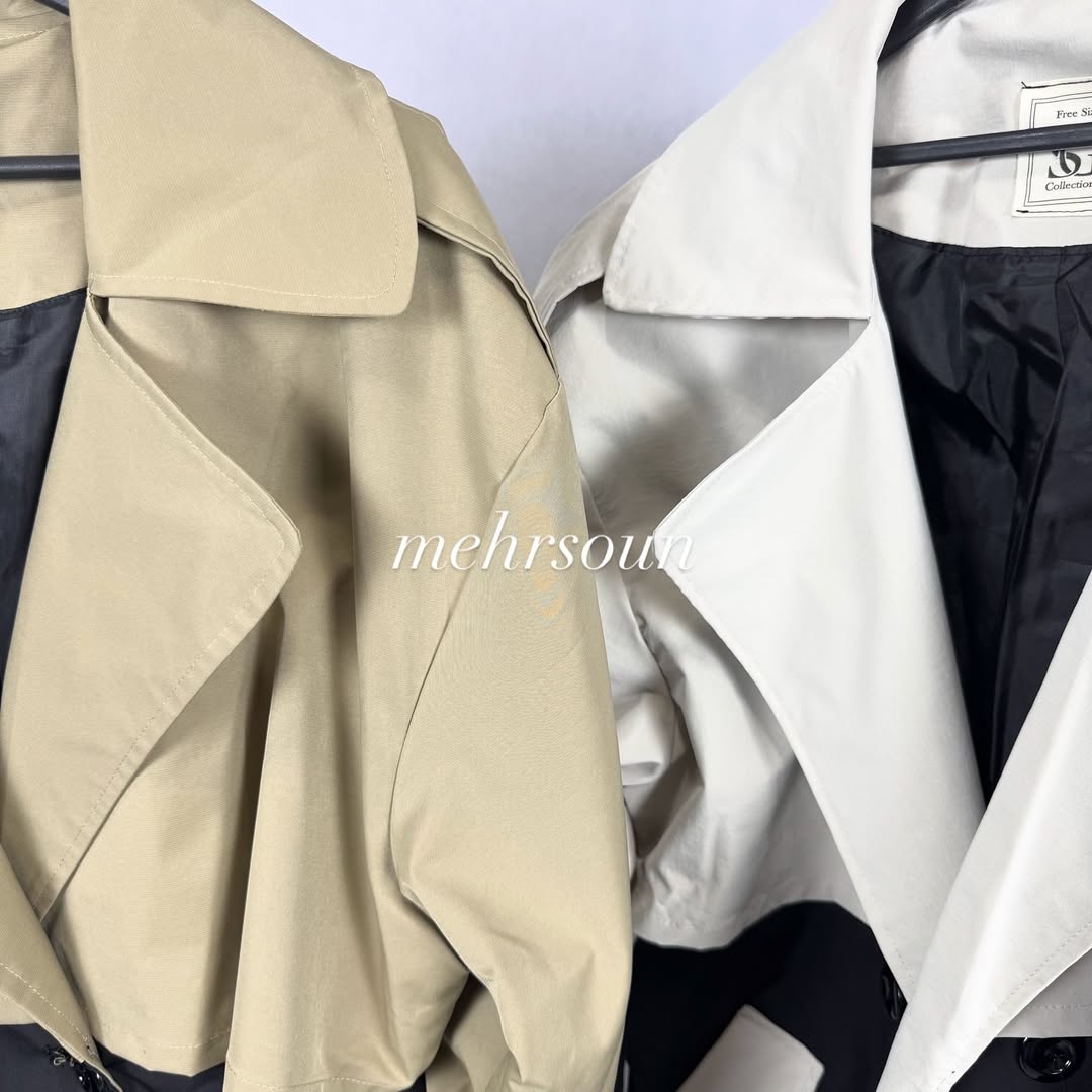 این بارونی با طراحی دوتکه و ترکیب رنگهای خنثی و مشکی، ظاهری مدرن، مینیمال و در عین حال خاص دارد. قسمت بالایی با فرم کلاسیک بارونی و جزئیات دکمهدار، حس رسمی و شیک را منتقل میکند، در حالی که بخش پایینی با فرم آزاد و مشکی، جلوهای کژوال و شهری به آن میبخشد. این تضاد رنگی و فرمی باعث شده تا این مدل هم برای استفاده روزمره مناسب باشد و هم برای موقعیتهای نیمهرسمی.