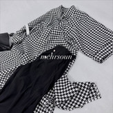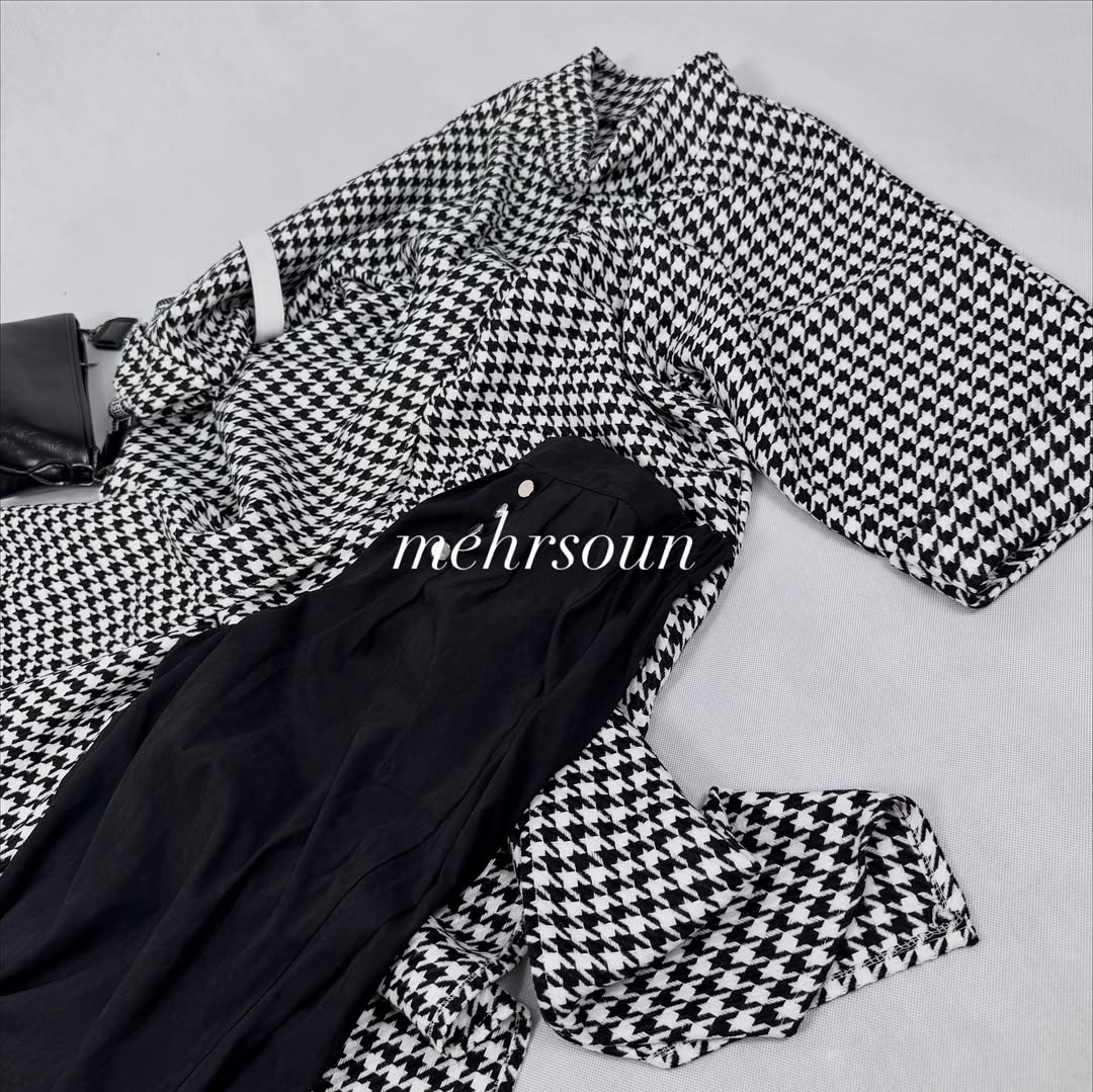 پیراهن از پارچهی پشمی با طرح پیچازی تهیه شده که هم گرم و لطیف است و هم در برابر چروک شدن مقاومت خوبی دارد. طرح پیچازی مشکی و سفید، حس کلاسیک و اصیل را منتقل میکند. شلوار نیز از پارچهی مشکی نرم و خوشافت ساخته شده که با دکمههای تزئینی جلوهای خاص پیدا کرده است. دوخت تمیز، لبهدوزیهای دقیق و تنخور آزاد نشاندهندهی کیفیت بالای این ست است.