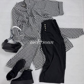 این ست زنانه شامل یک پیراهن پشمی با طرح پیچازی کلاسیک و شلوار وایدبگ مشکی است که ترکیبی از استایل پاییزی شیک و راحتی روزمره را ارائه میدهد. پیراهن با یقه ایستاده، آستینهای آزاد و فرم نامتقارن طراحی شده تا جلوهای خاص و مدرن به ظاهر شما ببخشد. شلوار وایدبگ نیز با فرم گشاد و دکمههای تزئینی، انتخابی عالی برای استایلهای خیابانی، کاری و دورهمیهای دوستانه است.