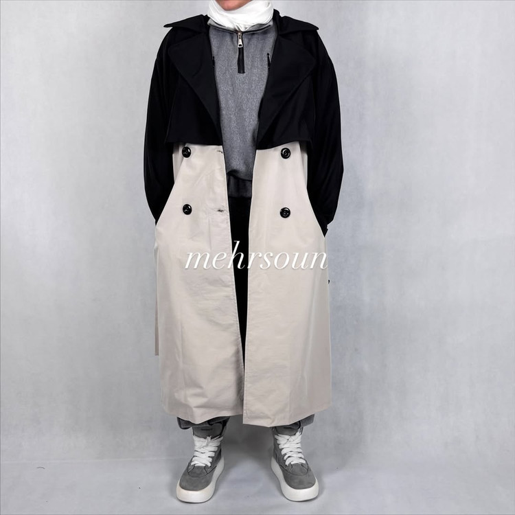 بارانی بلند زنانه دو رنگ از برند MEHRSOUN، ترکیبی بینظیر از طراحی مینیمال، عملکرد کاربردی و زیباییشناسی مدرن است. این مدل با تضاد رنگی بالاتنه مشکی و پایینتنه خنثی (بژ، کرم، تان یا قهوهای)، جلوهای خاص به استایل پاییزی و زمستانی شما میبخشد.
