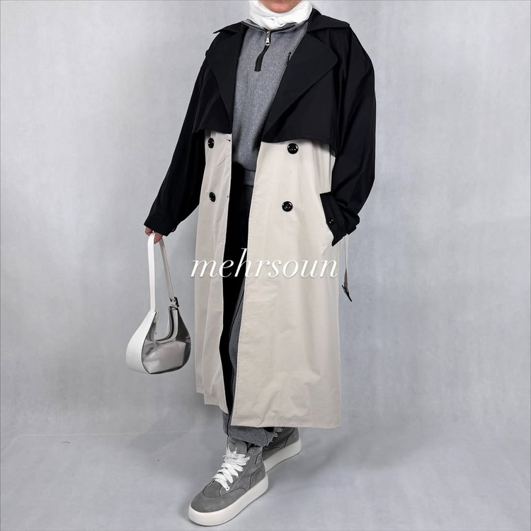 بارانی بلند زنانه دو رنگ؛ استایل مینیمال با جلوه لوکس