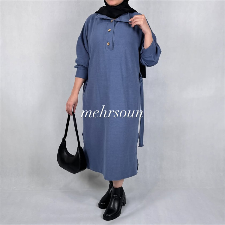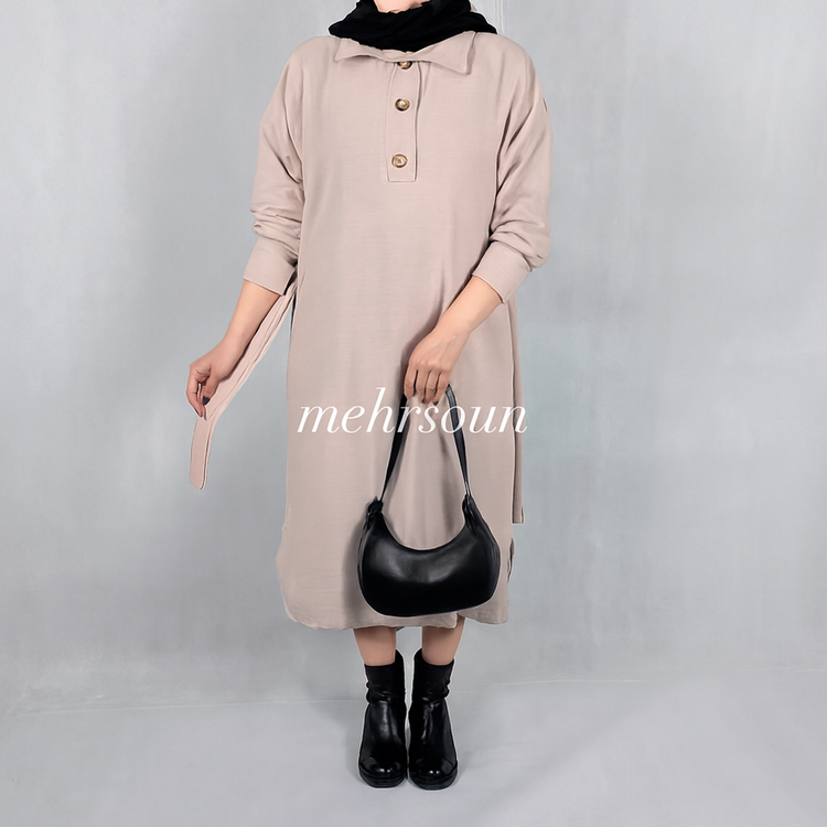 اگر به دنبال لباسی هستید که همزمان راحت، شیک و ستپذیر باشد، کفتان بازال بیسکویتی همان انتخابی است که هر روز به آن برمیگردید. بافت ریبد نرم با کشش ملایم، پلکت دکمههای مینیمال و کمربند همجنس، ظرافتی آرام و کاربردی را در کنار پوشش مودست ارائه میدهد.