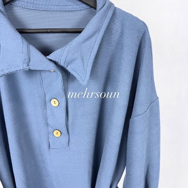 پارچه ریبد با بافت کشی ملایم، حس لطافت و راحتی را روی پوست ایجاد میکند. دوخت تمیز و دقیق در نواحی یقه، دکمهها و لبهها نشاندهنده توجه به جزئیات و کیفیت تولید است.