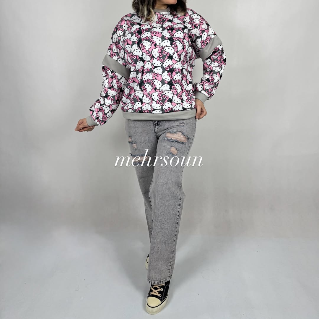 Hello Kitty: سفید با سرآستین طوسی