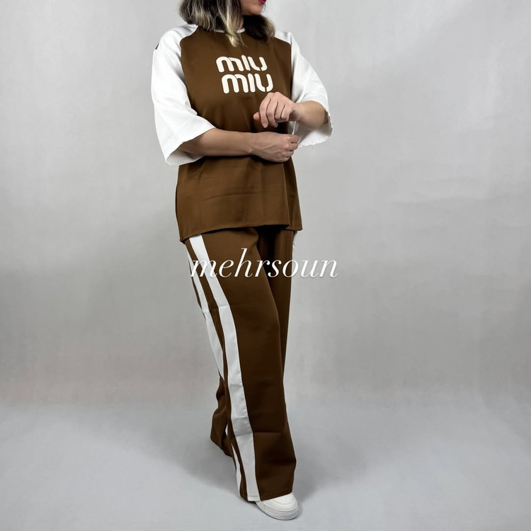 ست مازراتی میو میو یکی از محبوبترین انتخابها برای خانمهاییست که به دنبال ترکیب استایل اسپرت با راحتی روزمره هستند. این محصول با طراحی مینیمال، چاپ برند miu miu روی تیشرت و نوار سفید کناری روی شلوار، ظاهری مدرن و جوانپسند دارد که بهراحتی با اسنیکر سفید یا کتهای سبک ست میشود.