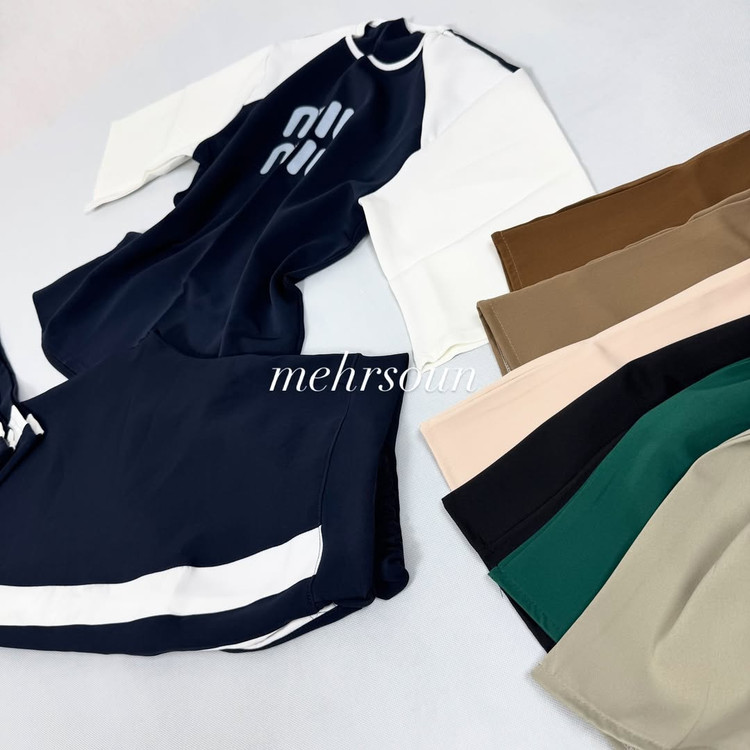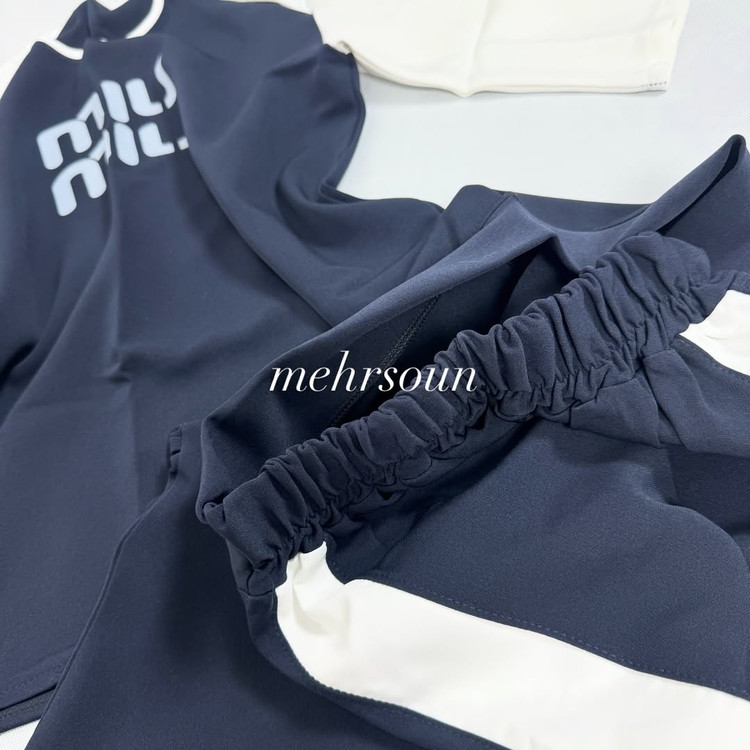 ست مازراتی میو میو با پارچه خوشفرم، نوار سفید کناری و چاپ تمیز؛ مناسب استایل روزمره و باشگاه سبک. رنگهای سرمهای، زیتونی، سفید، سبز تیره، کرمی و قهوهای. سایزبندی استاندارد، راحت و بادوام. با ضمانت مهرسون.