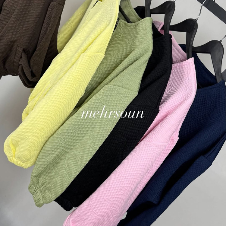 - جنس و بافت: پارچه تکسچردار (وافل/کویلت سبک) با لمس نرم و تنفسپذیر؛ مناسب چهار فصل معتدل.