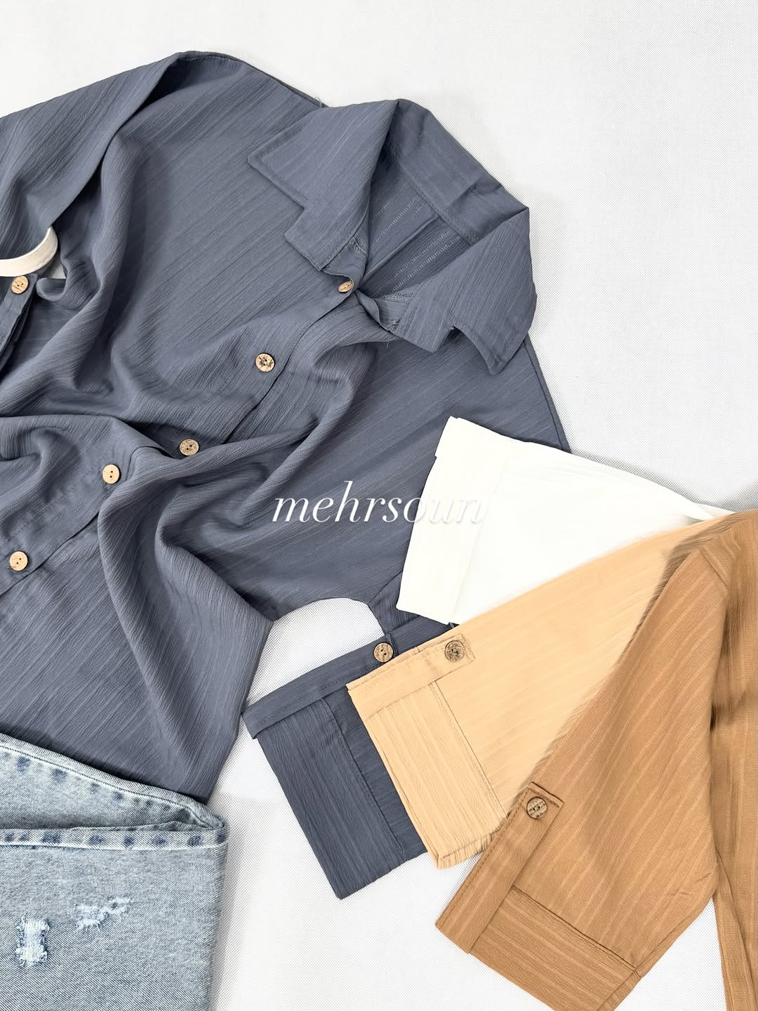 مدل: شومیز جلو دکمهدار با یقه ساده و طراحی مینیمال