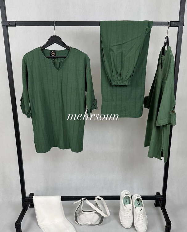 این ست شامل شومیز و شلوار از جنس جکوار باکیفیت و خنک است که بهخاطر طراحی ساده و شیک، مناسب استفاده روزمره و مهمانیهای دوستانه میباشد.