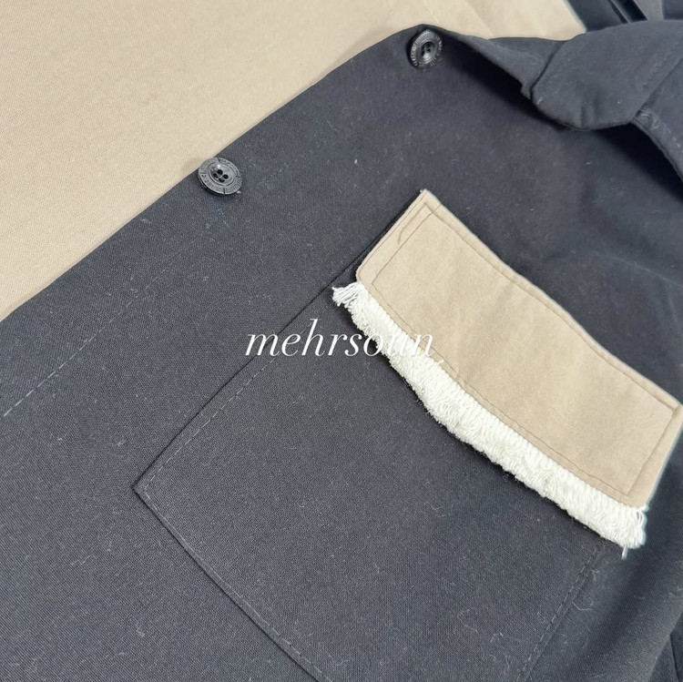 سرآستین و جیب با حاشیه کرم برای زیبایی بیشتر