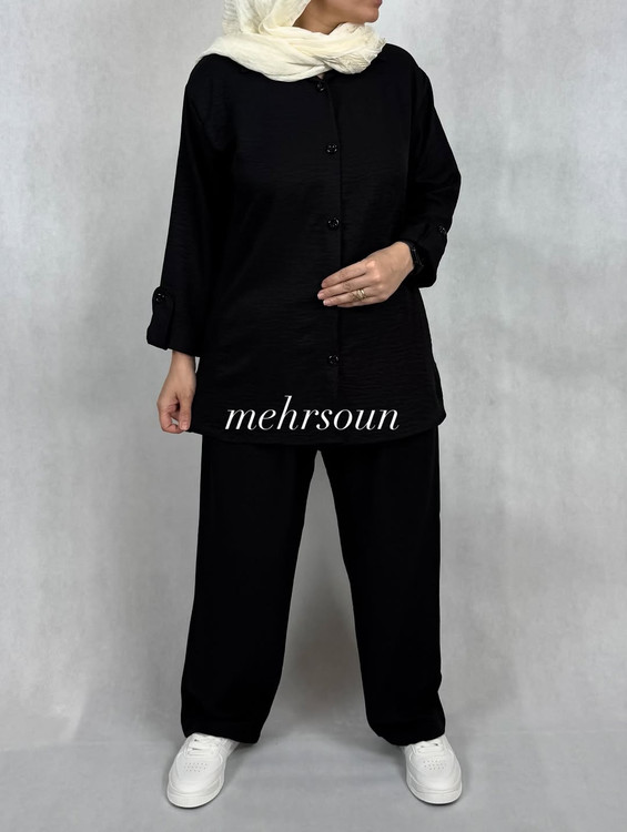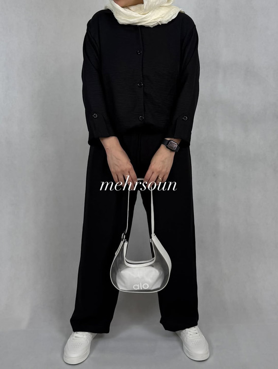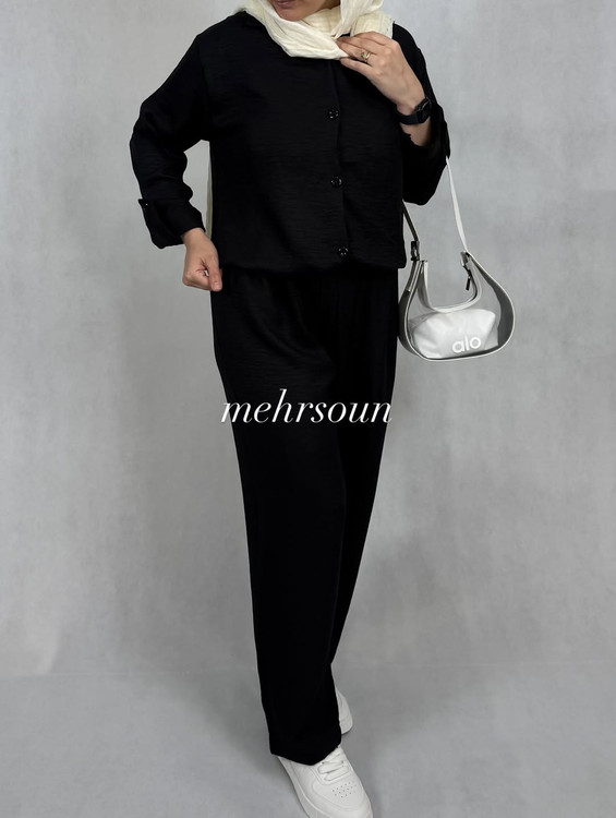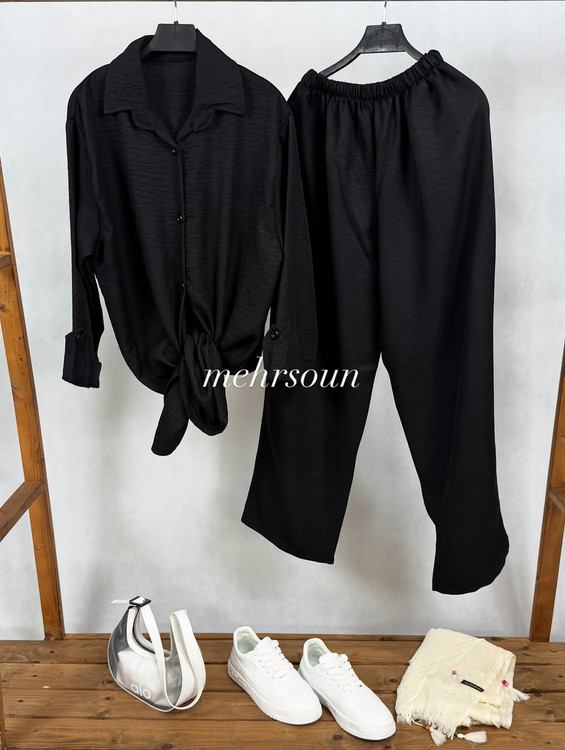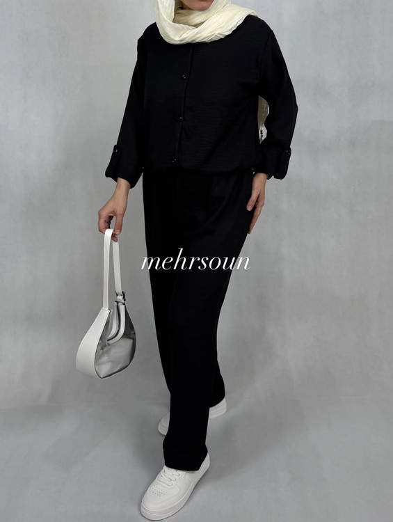ست مانتو و شلوار مشکی پارچه شانتون