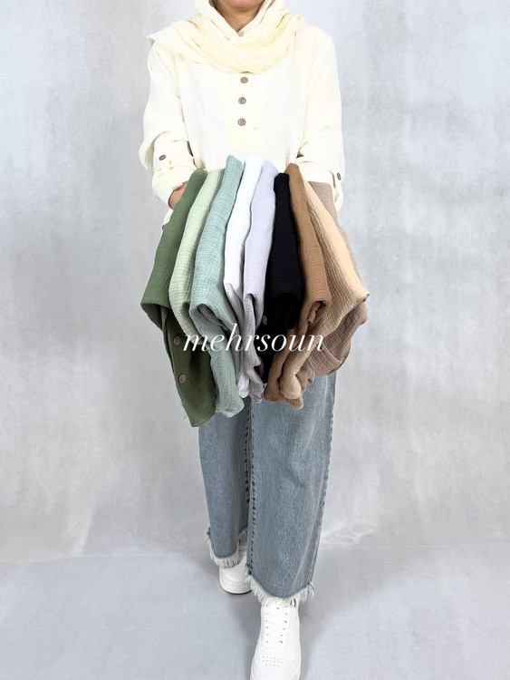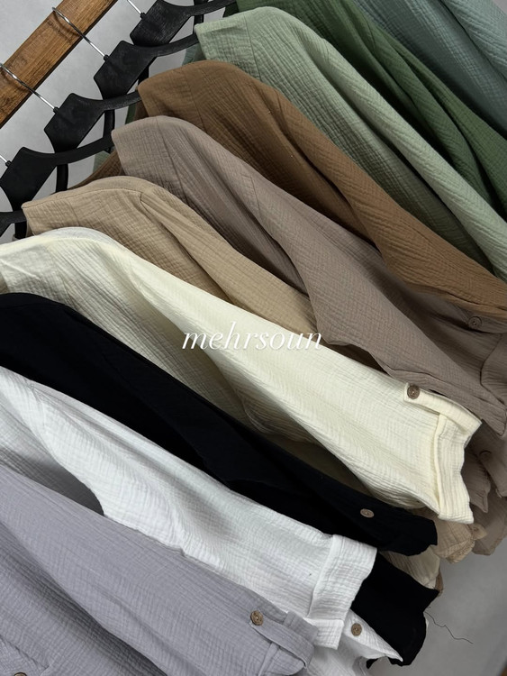 آستینهای بلند با قابلیت تا زدن و فیکس شدن توسط دکمه کنار آستین