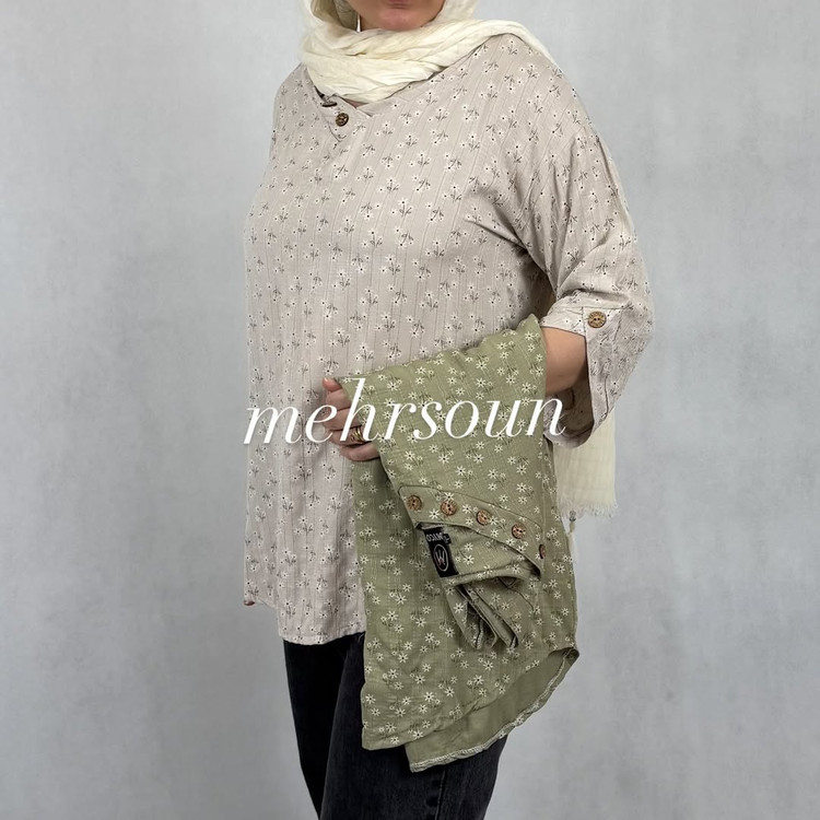 آستین: سهربع با دکمه و بند جهت جمع کردن و تنوع در استایل