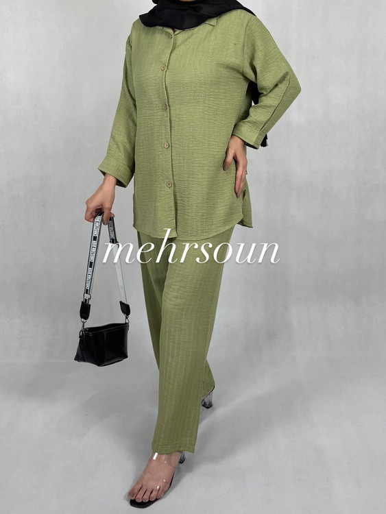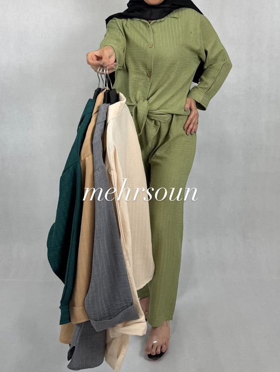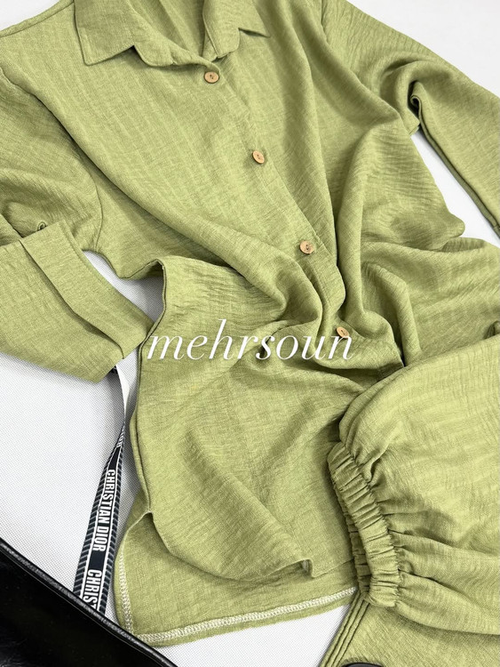 این ست شامل شومیز و شلوار از جنس پارچهی نخی شانتون هست که هم سبک و راحت و هم مناسب گرمای تابستونه.