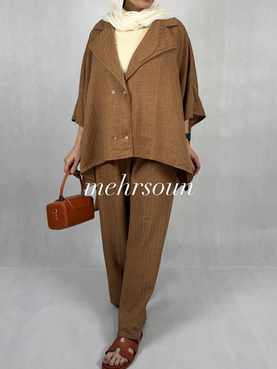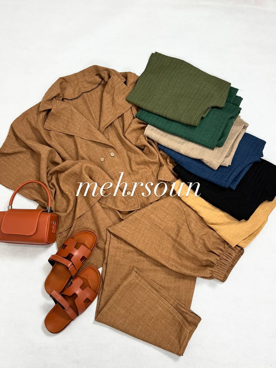 💡 این ست با ترکیب جذاب شومیز و شلوار، همزمان هم شیک و هم کاربردی است. با کفش صندل و کیف کوچک میتوانید یک استایل تابستانهی خاص بسازید.