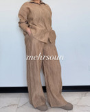 جزئیات : شلوار فول بگ،کمر تمام کش،جیب های دو طرف شلوار،بالاتنه جلو باز دکمه خور