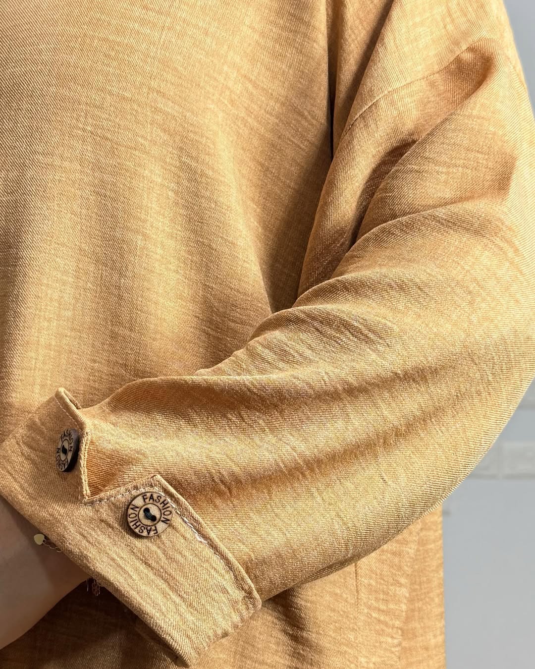 آستین پاکتی کار شده: با دکمههای ظریف که حس متفاوت و جذابی به لباس میدهد