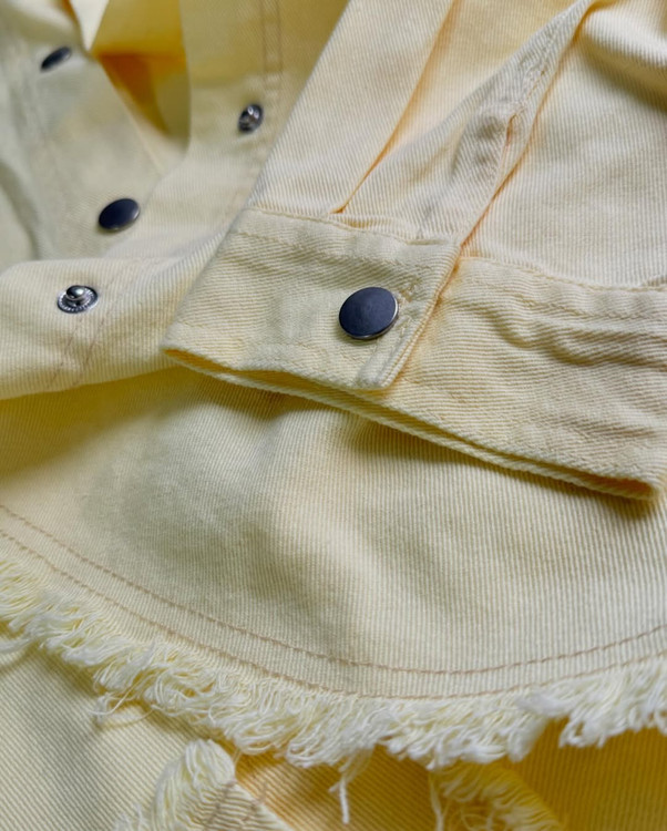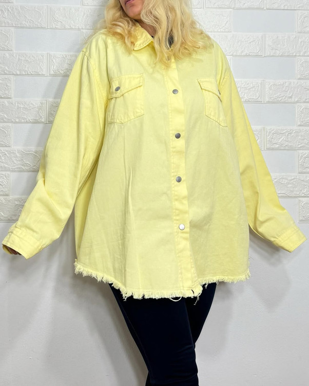 یک کت جین شیک و خوشرنگ که هم راحت است و هم «استایل» میسازد. این کت با رنگ لیمویی روشن، برش اُورسایز و لبهٔ زیرِ ریشریش، انتخابی عالی برای روزهای خنکِ بهار و پاییز یا برای وقتی که میخواهید یک لایهٔ سبک و چشمگیر به استایلتان اضافه کنید.