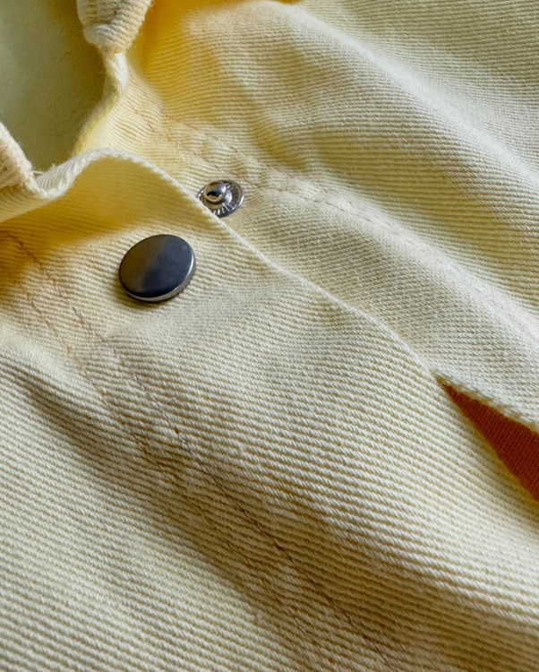 کت جین لیمویی ما با تاکید روی راحتی و قابلیت ست شدن طراحی شده است. برشی آزاد (اُورسایز) دارد که پوشیدن آن روی تیشرت، جلوهٔ جذابی ایجاد میکند و امکان لِیِرینگ (رویه کردن چند لباس) را فراهم میآورد. یقهٔ کلاسیک، دکمههای فلزی ساده و جیبهای کاربردی در قسمت سینه، حس کلاسیک کت جین را حفظ کردهاند؛ در عین حالِ لبهٔ پایینِ ریشریش به آن جلوهٔ مدرن و فشن میدهد.
