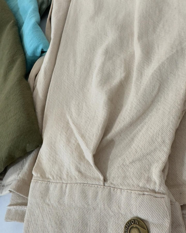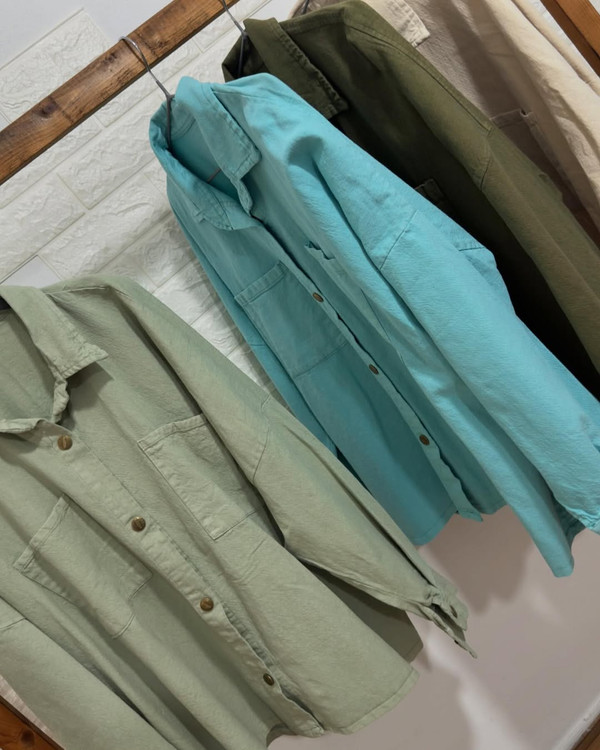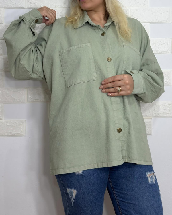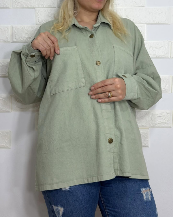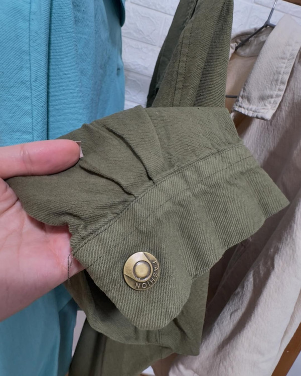 طراحی ساده و کاربردی با جیبهای بزرگ و دکمههای فلزی.