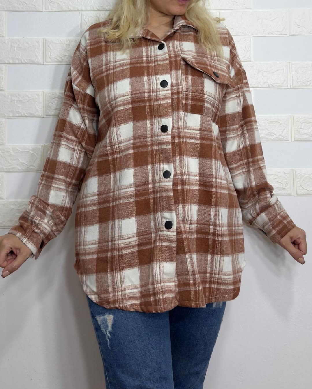 این کار از جنس پشمی با کیفیت دوخته شده که علاوه بر حفظ گرما، حس نرمی و راحتی هم داره و برای هوای پاییزی خیلی مناسبه. طراحی اون به شکل شکت چهارخونه هست که این روزها ترند و پرطرفدار شده و به راحتی میشه اون رو هم به عنوان رویه (مانند کت یا مانتو کوتاه) و هم به شکل تکی روی شلوار جین یا لگ پوشید.