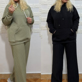ست هودی و شلوار تیلهای، ترکیبی بینقص از راحتی و زیبایی است. این محصول با طراحی مینیمال و بافت ریبدار، حس لطافت و گرما را در روزهای سرد به شما هدیه میدهد. هودی دارای جیب کانگورویی و کلاه بنددار است که علاوه بر کاربردی بودن، جلوهای اسپرت و شیک به استایل شما میبخشد. شلوار نیز با فرم آزاد و دمپا گشاد، آزادی حرکت و راحتی را تضمین میکند.